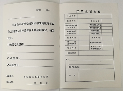 2、型号证书发放原则:一个产品办理型号证书时,其内配的主要元件应办理过型号证书。例如:真空断路器发放型号证书的前提,是其所用灭弧室应具有型号证书;若为固封极柱式真空断路器,则其固封极柱应具有型号证书。其次,申请办理型号证书的厂家其产品应进行过符合规定要求的鉴定(即,应有产品的鉴定证书)。此外,证书发放时,证书办理部门都会对厂家的相关材料(主要是技术资料,详见文件《如何申请并办理产品型号证书》中项目 2 的 a)~i)项)进行认真的审查。