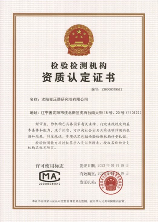 沈阳变压器研究院有限公司(以下简称 “沈变院”)为西安高压电器研究院股份有限公司全资子公司,成立于1960年,位于沈阳市沈北新区,承担了全国变压器行业的标准制、修订和信息管理工作,是全国标准化委员会(SAC)变压器标委会(TC44)、互感器标委会(TC222)及小型变压器标委会(TC418)的秘书处单位,同时是国际电工委员会(IEC)电力变压器技术委员会(TC14)、互感器技术委员会(TC38)和小型电力变压器、电源装置及类似产品的安全技术委员会(TC96)及国际大电网委员会(CIGRE)变压器学术委员会的国内技术归口单位,是中国电器工业协会变压器分会秘书处常设单位。国家变压器质量检验检测中心(CTQC)设立于沈变院。