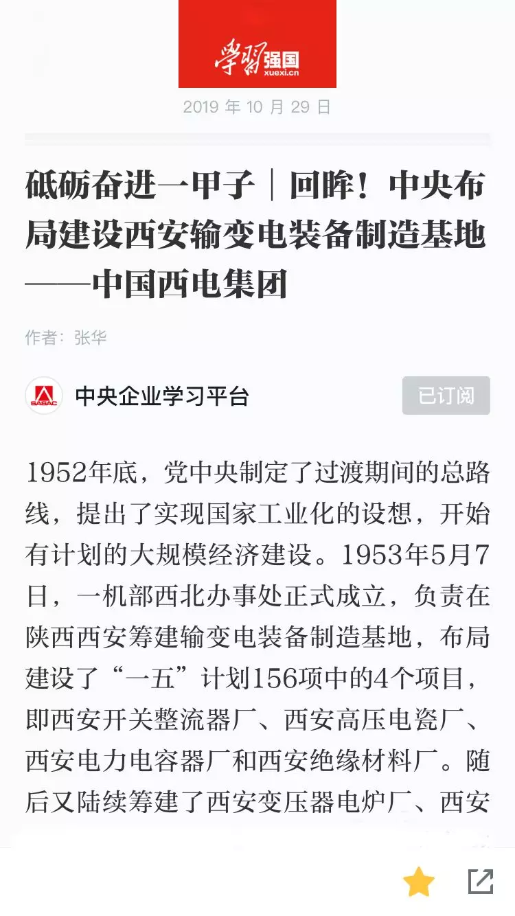 1959年,中央同意一机部设立西北电力机械制造公司(后改名“西安电力机械制造公司”、“中国西电集团公司”、“中国西电集团有限公司”,以下简称中国西电集团),秉承红色血脉,中国西电集团应运而生。