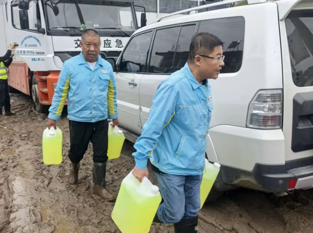中国石油国家危险化学品应急救援兰州石化队紧急集结30名救援队员和6辆抢险救援车,携带200套救援物资及液压救援顶杆、生命探测仪、无人机等专业设备,向榆中灾区紧急驰援。8月8日17时,兰州分公司8名党员组成“救援先锋队”,携5吨油品及矿泉水、方便面等应急物资,驰援灾区。“救援先锋队”克服重重阻碍,历时7个小时后,将第一批油品成功送到了救援现场,并立即为抢险救援车辆、机械和发电机等设备加注燃油,争分夺秒助力打通抢险救灾生命线。