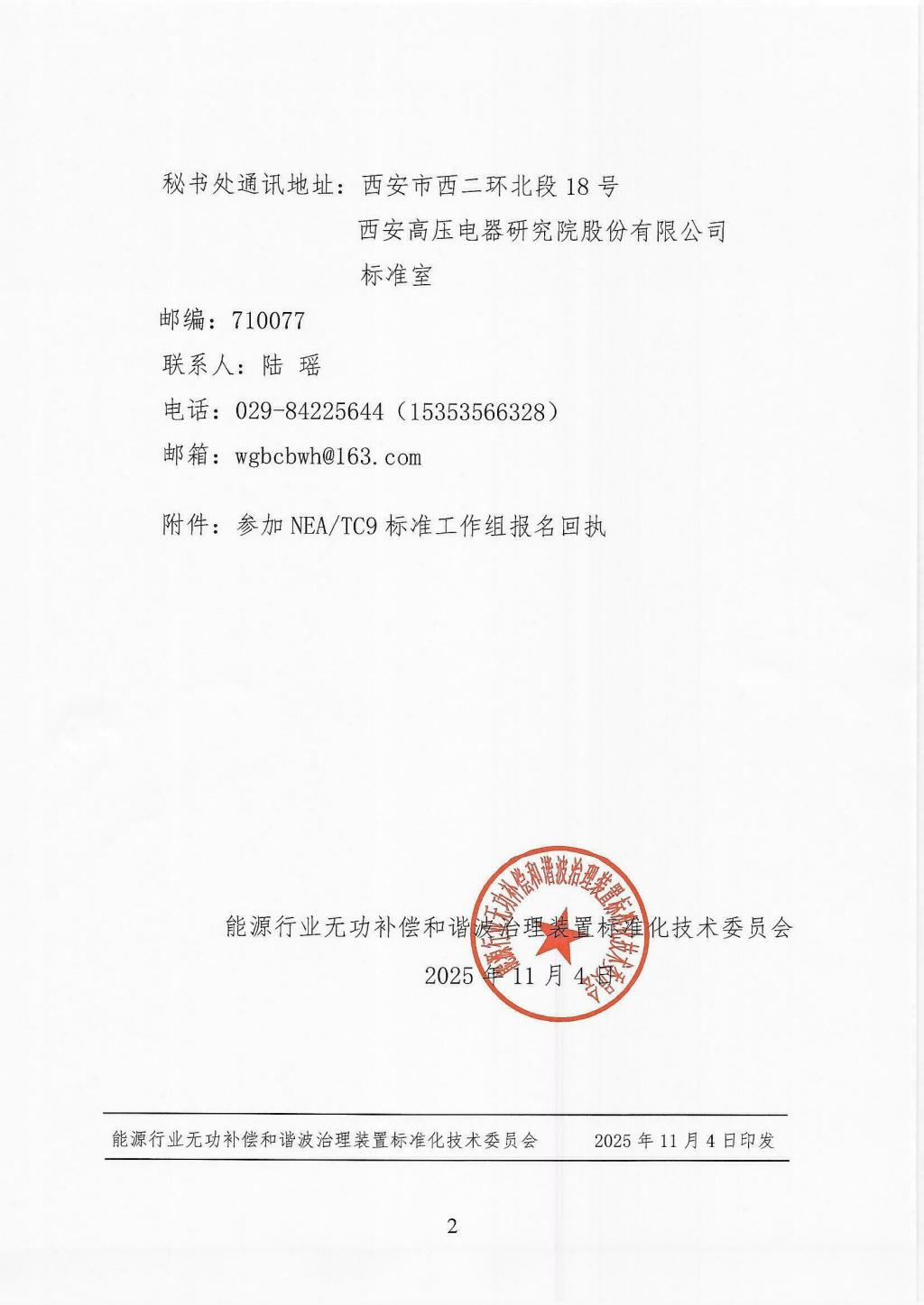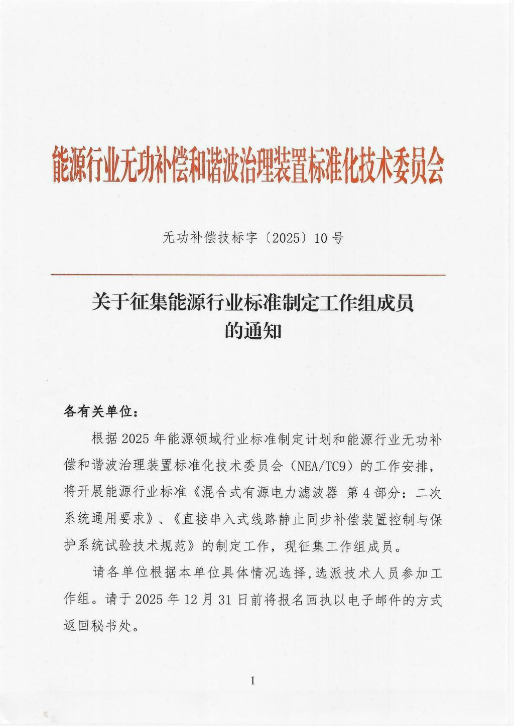 无功补偿技标字〔2025〕10号——关于征集能源行业标准制定工作组成员的通知