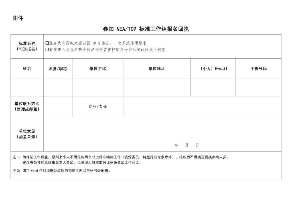 无功补偿技标字〔2025〕10号——附件 参加 NEATC9 标准制定工作组报名回执.doc
