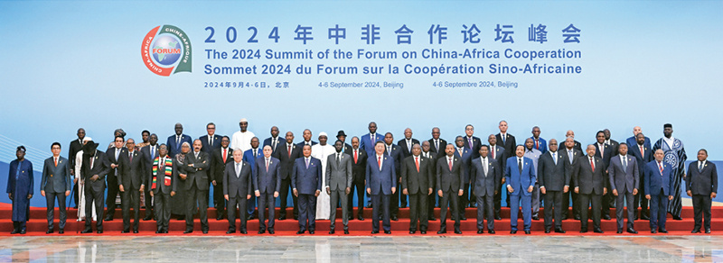 2024年9月5日上午,国家主席习近平在北京人民大会堂出席中非合作论坛北京峰会开幕式并发表主旨讲话。这是开幕式前,习近平同出席峰会的外方领导人集体合影。新华社记者 饶爱民 摄